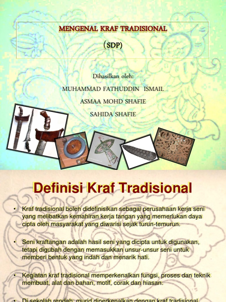 . Hasil kraf tangan selalunya membawa kepentingan kebudayaan danatau keagamaan. Pertandingan Keceriaan Merdeka Peringkat Kebangsaan 2011 Smk Dato. Kraftangan ialah kerja penghasilan peralatan berguna atau hiasan dengan menggunakan tangan sepenuhnya atau perkakas ringkas sahaja.